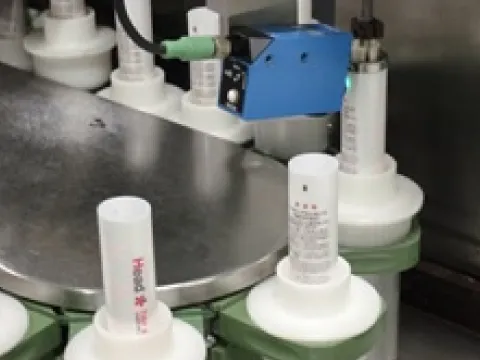 3mlから300mlまでのサイズに対応可能なチューブ充填ラインは、シール部分の形状がきれいなホットエアーシール方式を採用しており商品の外観を損ないません。また、スクリューキャップやヒンジキャップなどフレキシブルに対応可能です。